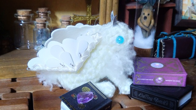 【飛兎獣シャルコニー】 翼のような耳が特徴的なウサギ型の幻獣。寿命が長く、知識の番人として新たな魔法や命を種族間で伝え続ける。 【 Tt召喚獣 】とは… 召喚士アコによる、編み技法をメインに召喚されたシリーズです。 ●可動部位…手足、耳羽 ●翼の先にチャーム等がつけられるカンあり ●size…体長約12cm(シリーズ共通) 【必読事項】 ●定形外の発送には事故防止のため特定記録を必ず付けさせていただきます。