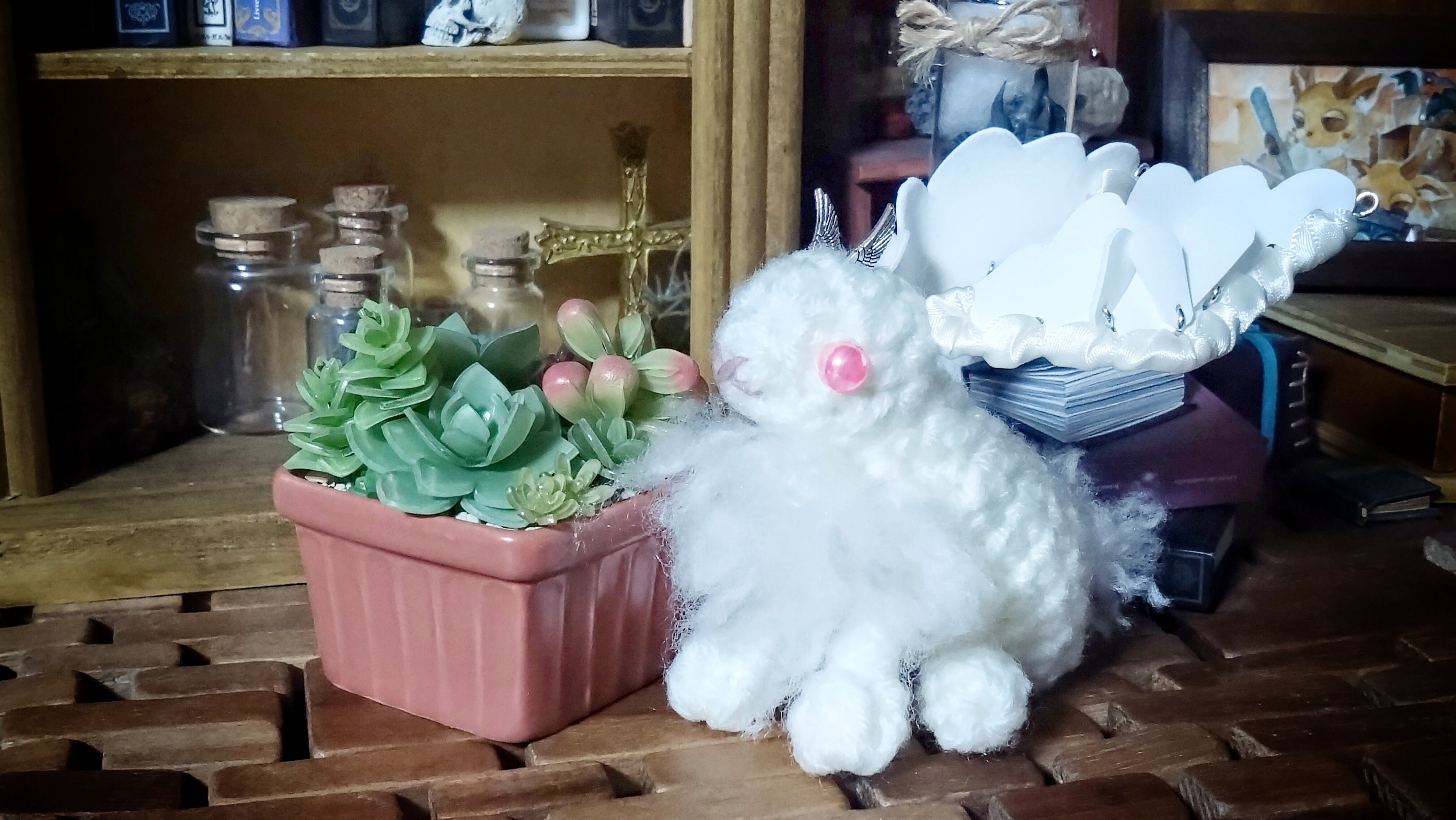 翼のような耳が特徴的なウサギ型の幻獣。寿命が長く、知識の番人として新たな魔法や命を種族間で伝え続ける。