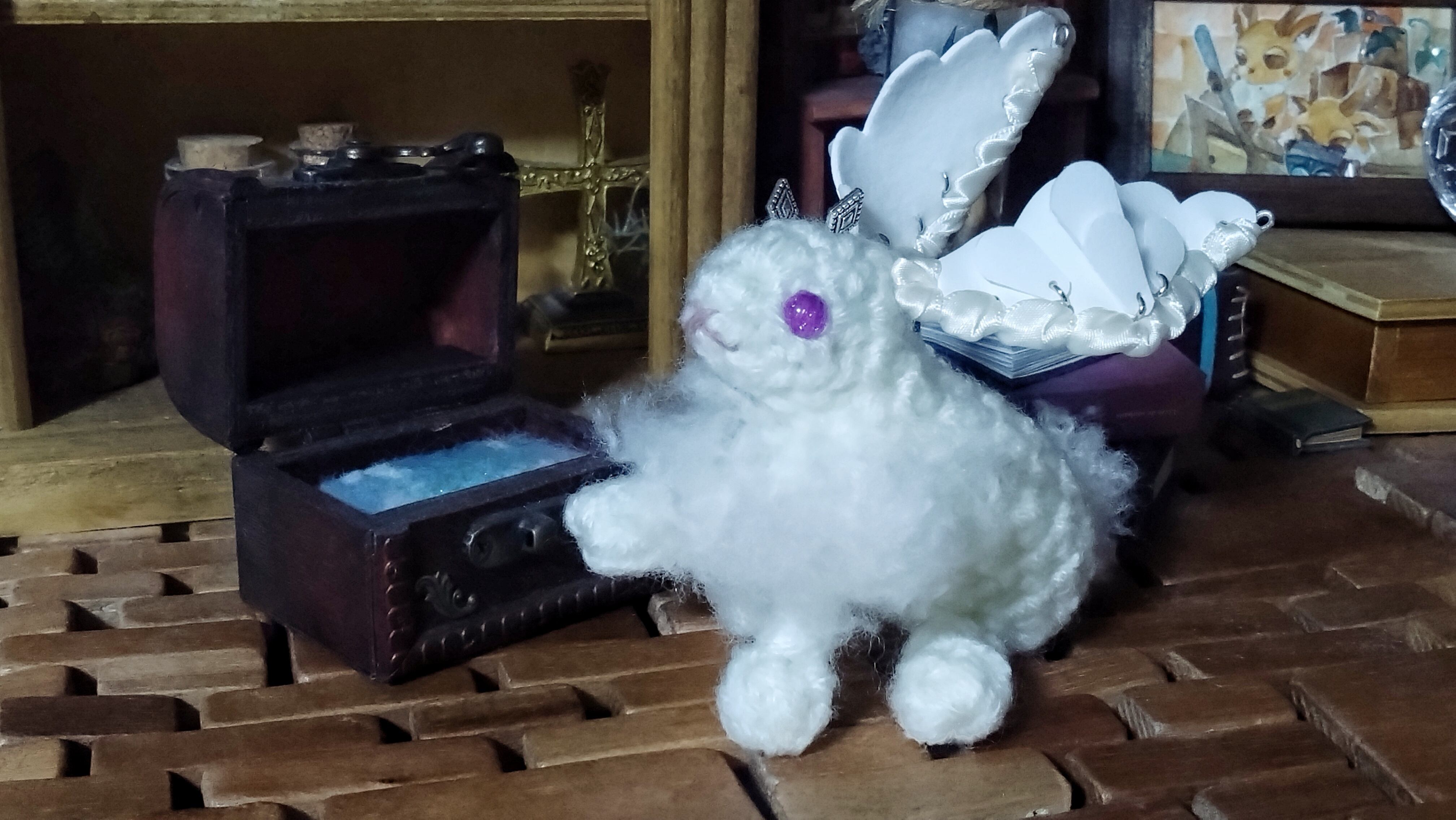 翼のような耳が特徴的なウサギ型の幻獣。寿命が長く、知識の番人として新たな魔法や命を種族間で伝え続ける。